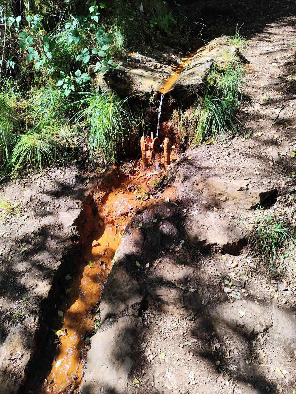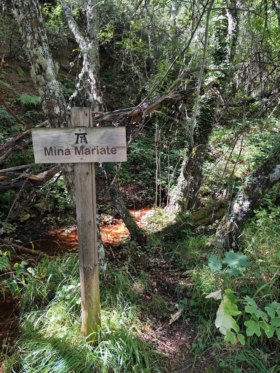 A manca d’arribar a peu pla de riu, trobem la Mina Mariate i una mostra dels vagons que es feien servir. Cal fixar-se en al rojor que hi ha en la terra provocat pel pas de l’aigua, sens dubte una aigua molt mineralitzada pel ferro, concretament.
