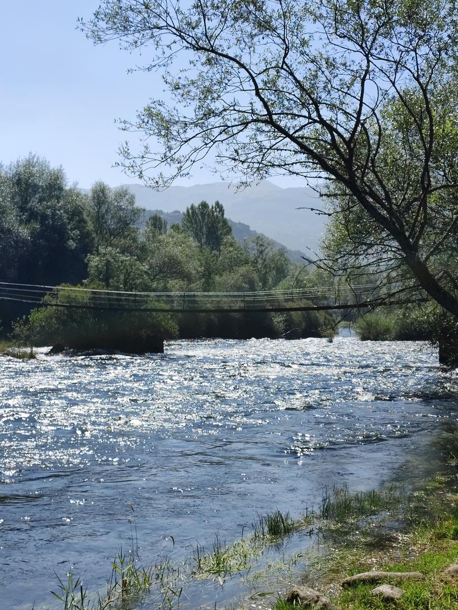 Ara ja toca caminar pel costat del riu. Abans d’arribar a la població d’Alejico hi ha el Puente Colgante que els més atrevits creuen per anar a Aleje, a l’altra banda del riu Esla. No comporta cap perill, però el fet de moure’s mentre camines dóna una sensació d’inestabilitat important. Per això és recomanable que el travessin molt poques persones alhora, sinó les petjades d’uns i altres fan que els moviments siguin descompassats i potser sí que pot arribar a provocar algun perill. Jo, com que estic sol, arribo fins al mig per capturar unes imatges impagables.
