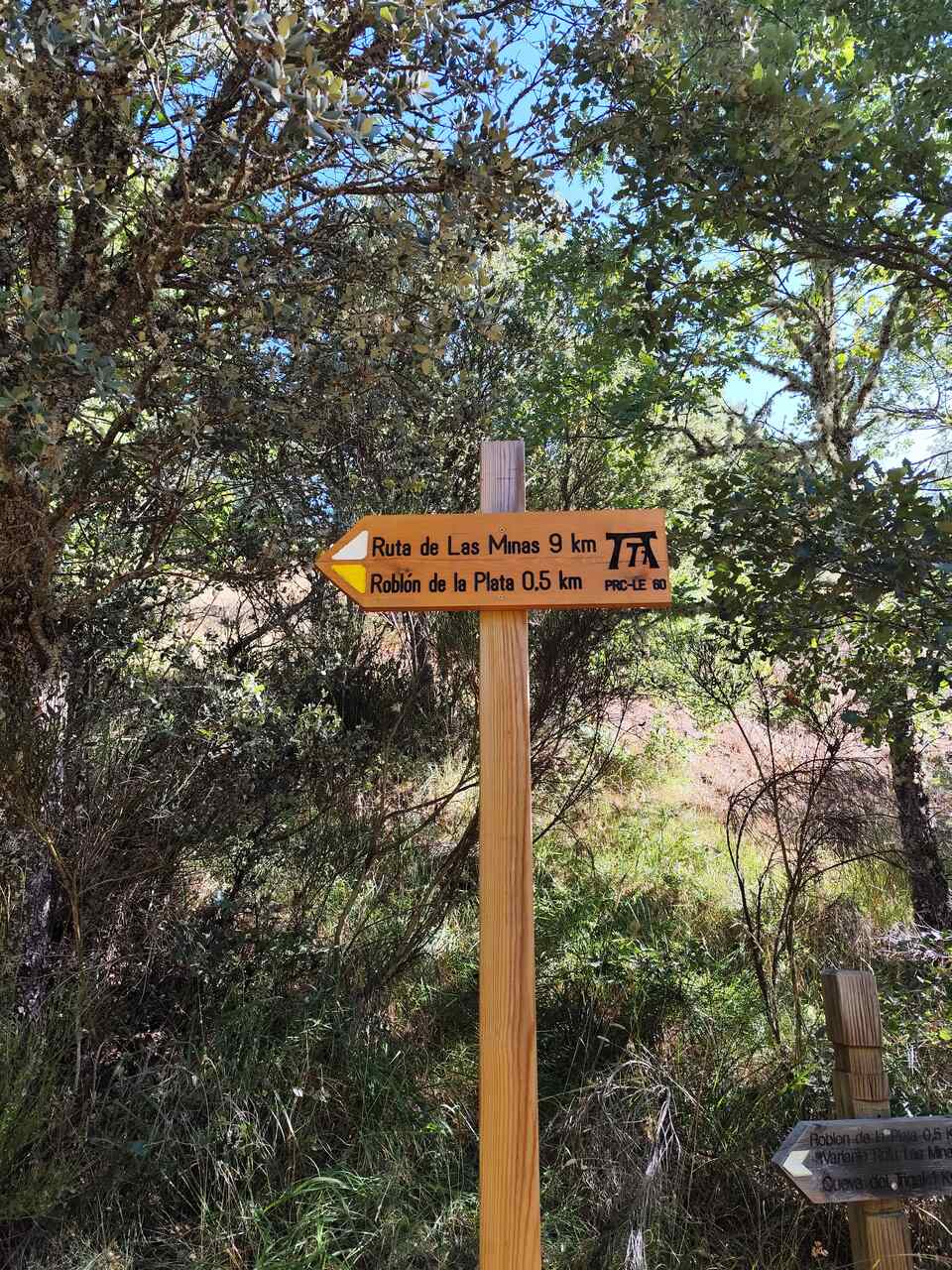En poca estona m’aturo davant d’un roure enorme encerclat: el Roblón de la plata, que agafa aquest nom perquè està a prop a una de les antigues mines de la zona, la Mina de la Plata. Per les seves dimensions, s’estima que aquest roure té uns 700 anys de vida. En aquesta mina s’extreia un tipus de galena composta principalment per plom i argent, d’aquí el seu nom.